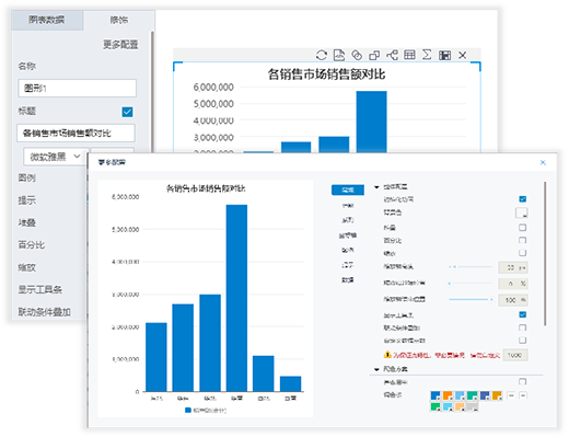轻松对图表进行个性化配置,进行标题、图例、提示、堆叠等快捷配置