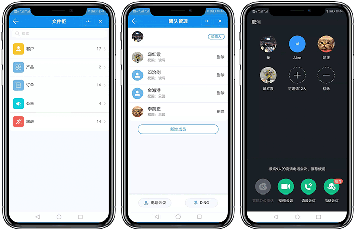 成应用,一键即可将团队成员拉到电话会议群中,大幅度提