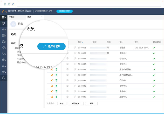 钉钉中的组织架构与CRM系统一键同步,无需在CRM系统中维