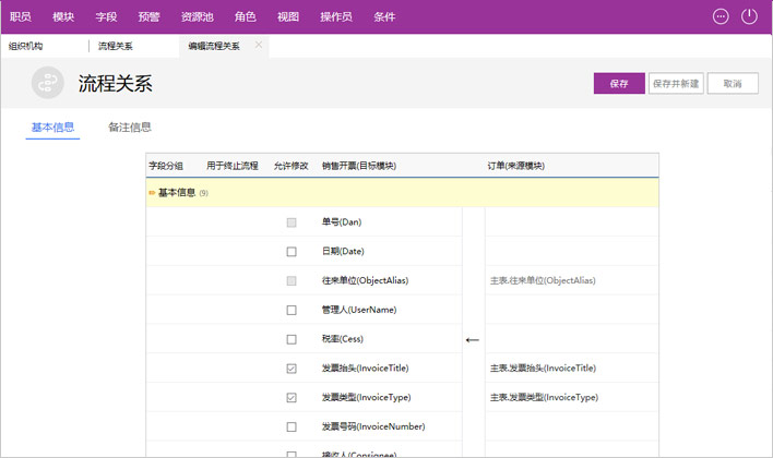 字段关系配置