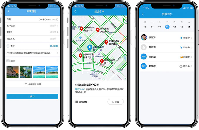 通过移动端可以轻松进行员工移动行为管理,包括:业务拜访定