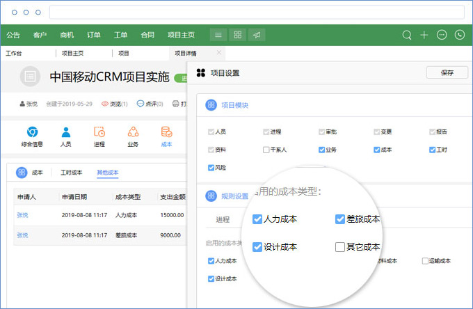实现项目成本的动态定义与管理,根据不同的项目可以定义配置需