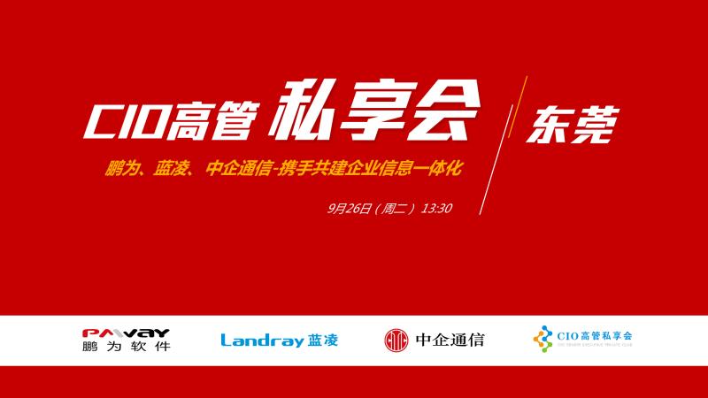 9月26日下午,由鹏为软件股份有限公司(简称 鹏为软件)、蓝凌软件股份有限公司(简称 蓝凌软件)、中企网络通信技术有限公司(简称 中企通信)共同举办的《共建企业信息一体化——CIO高管私享会》——东莞站,在东莞会展国际大酒店举行。