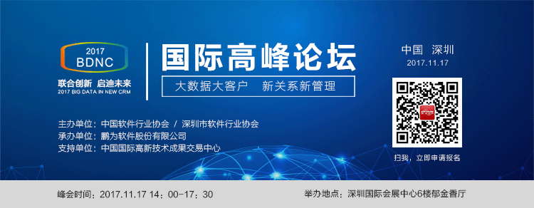 2017年11月17日下午,由中国软件行业协会和深圳市软件行业协会主办,鹏为软件股份有限公司承办的“大数据大客户 新关系新管理”国际高峰论坛将在深圳国际会展中心起航。本次峰会我们邀请知名学府专家学者、行业大咖、企业CEO一起论道,共同探讨新模式、新方向,提升产业综合实力,促进大数据应用在软件产业健康发展。