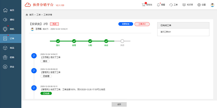 渠道的全业务过程管理:针对渠道的商机分配执行、重点项目过程全过程管理、终端客户的成单进行有效管理