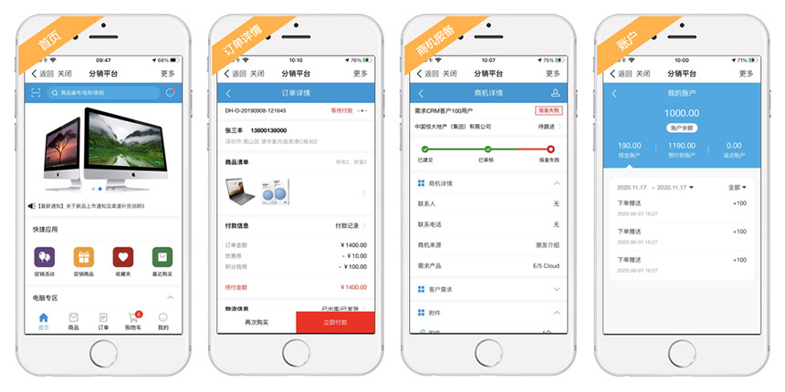 伙伴分销平台平身也是一套内部的CRM平台,渠道自身业务的CRM建设,建立基于终端客户的统一营销服务平台