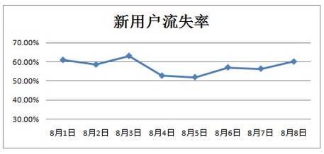 新用户流失率 我们可认为新用户注册后就完成首次登陆,那么简单地定义新用户流失,就是用户在注册后一段时间内都没有登录过游戏,即 当前时间点 – 用户注册时间点 > 流失临界时间间隔 比如我们定义用户的流失临界时间间隔为1个月,也就是在注册后的一个月内未登录的用户意味着已经流失,那么就可以计算每天的新用户流失数,即注册时间为1个月前的那一天,而从注册到当前没有登录过的用户数。这个用户数与1个月前的那一天的总注册用户数的比例就是新用户的流失率: 当天的新用户流失数 / 当天的总注册用户数 = 新用户流失率 计算出每天的新用户流失率,并观察它的变化趋势: