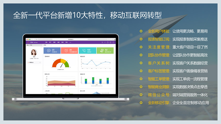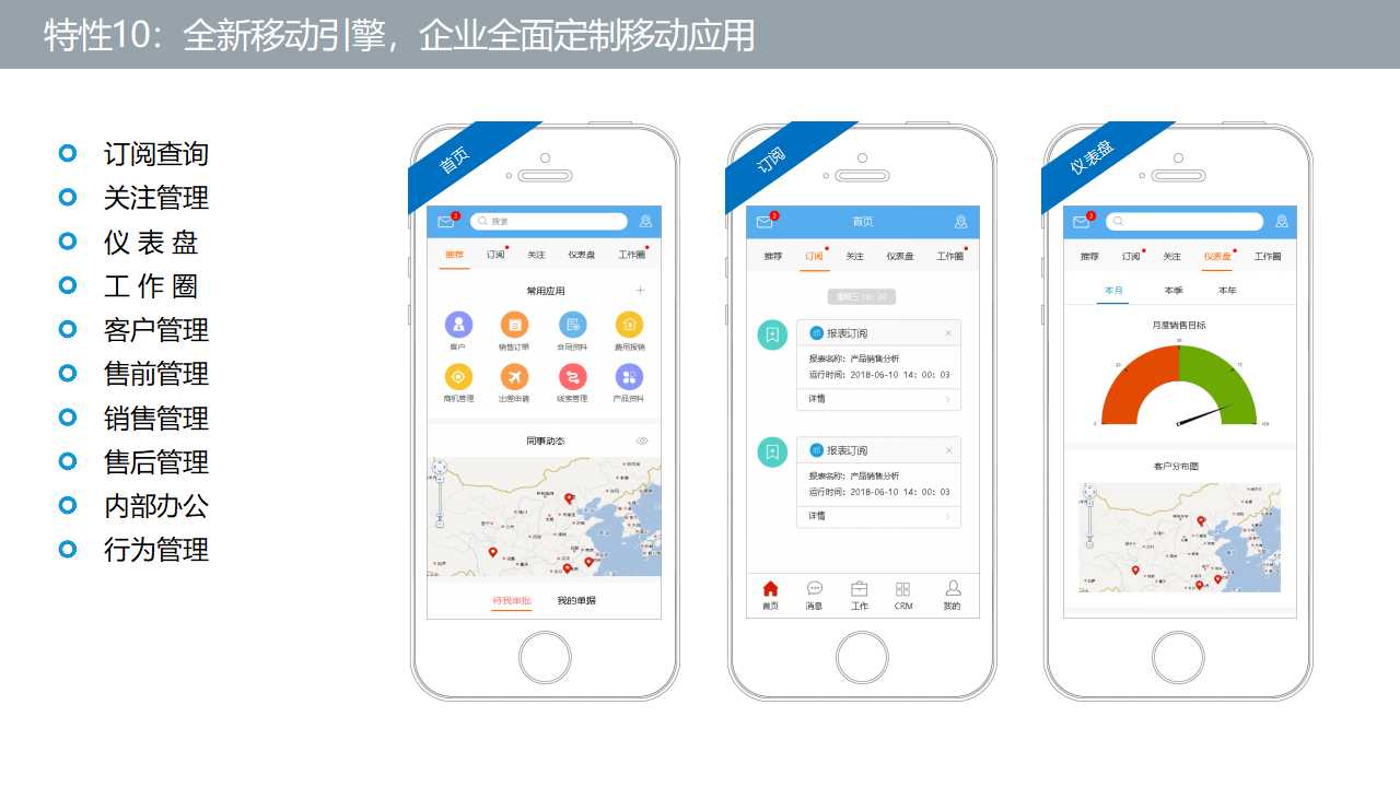 E/8 Cloud平台对引擎进行了重大升级,从CRM后台的移动引擎配置、到移动端看板应用、订阅查询、关注管理、仪表盘、工作圈、移动行为管理、移动CRM应用,大幅度提升移动应用体验。