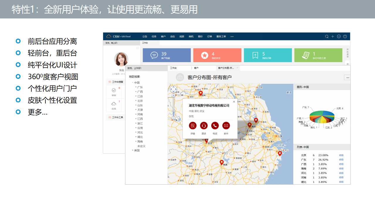 E/8 Cloud平台将前后台应用分离,遵循轻前台重后台的开发设计理念,纯平台化UI设计,360度客户视图应用场景,个性化用户门户工作台,可进行皮肤个性化设置,让使用更流畅更易用。